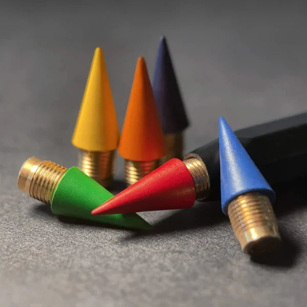 Onze gekleurde vullingen transformeren uw potlood in een twee-in-één accessoire: gewoon potlood én kleurpotlood. Twee keer zo nuttig, twee keer zo goedkoop en twee keer zo compact.